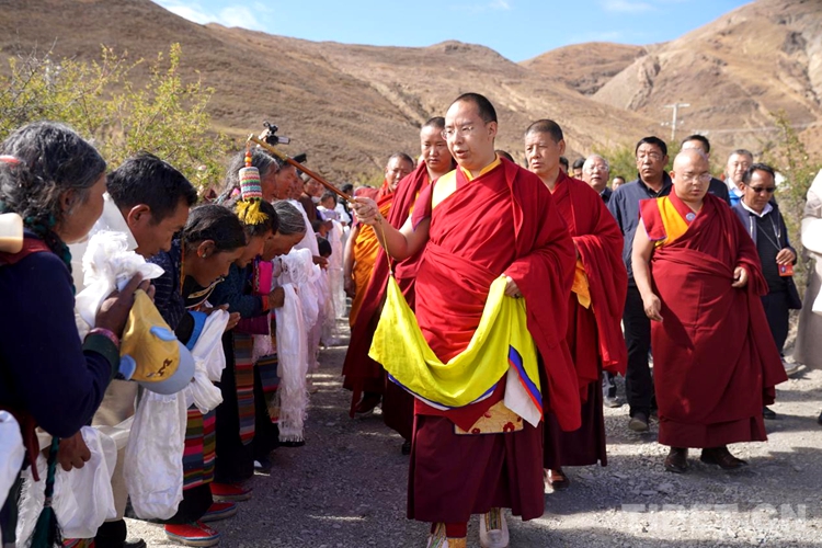 圖為班禪步入位于海拔4703米的查卡慶寺 攝影:王淑