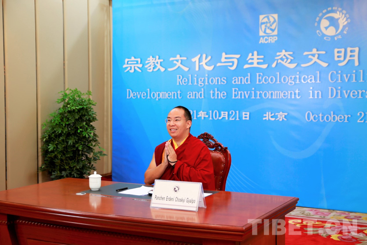 中國(guó)西藏網(wǎng)訊 10月21日,中國(guó)宗教界和平委員會(huì)(以下簡(jiǎn)稱“中宗和”)組織召開亞洲宗教和平會(huì)議第九屆大會(huì)環(huán)境與發(fā)展分論壇暨“宗教文化與生態(tài)文明”國(guó)際研討會(huì)視頻會(huì)議。“中宗和”委員、中國(guó)佛教協(xié)會(huì)副會(huì)長(zhǎng)班禪額爾德尼?確吉杰布在西藏自治區(qū)日喀則市以視頻連線方式參會(huì),并作《共建人與自然生命共同體 建設(shè)清潔美麗世界》主題發(fā)言。