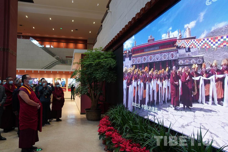 圖為班禪在西藏拉薩參觀西藏和平解放70周年成就展 攝影:王淑