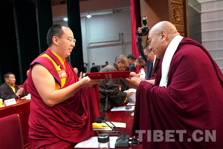 圖為班禪為優(yōu)秀講經(jīng)高僧、闡釋論文者頒獎(jiǎng) 攝影:王淑