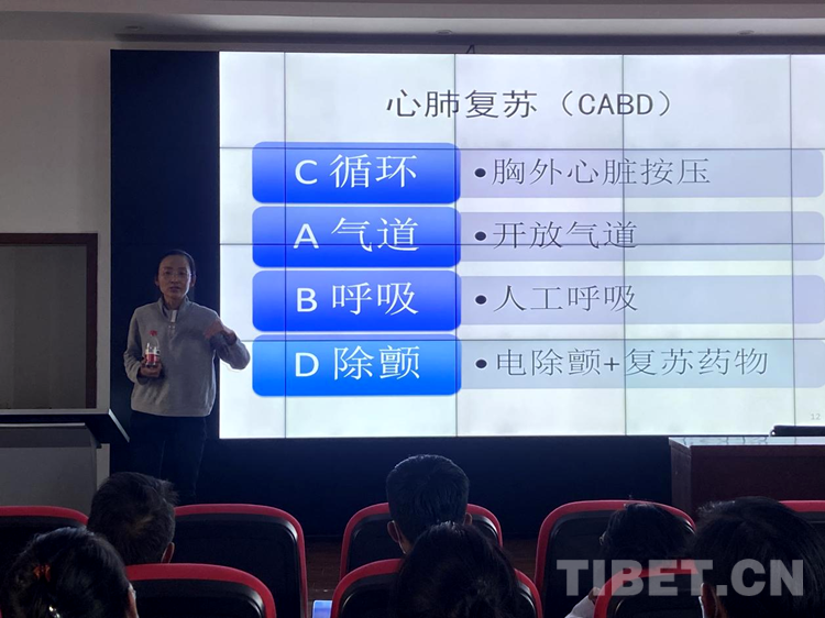 義診之后,北京第七批援藏醫(yī)療隊代表劉海霞醫(yī)生對社區(qū)衛(wèi)生院醫(yī)護(hù)人員進(jìn)行了心肺復(fù)蘇等急救培訓(xùn),參與義診的專家、醫(yī)生就社區(qū)衛(wèi)生院醫(yī)護(hù)人員在日常工作中所遇到的臨床問題進(jìn)行解答。
