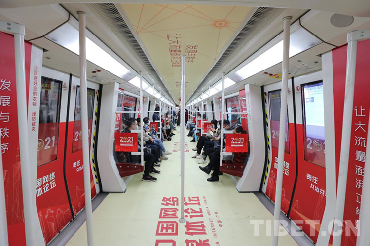 中國(guó)西藏網(wǎng)訊 2021中國(guó)網(wǎng)絡(luò)媒體論壇將于11月24日至25日在廣州舉辦。論壇召開(kāi)前夕,廣州地鐵在八號(hào)線(xiàn)推出了論壇主題列車(chē)。該主題列車(chē)以慶祝建黨100周年貫穿全年的紅色為主基調(diào),將本屆論壇5個(gè)平行論壇的主題“傳播:塑造價(jià)值”“創(chuàng)新:技術(shù)賦能”“發(fā)展:行穩(wěn)致遠(yuǎn)”“責(zé)任:共治共享”以及“大灣區(qū):一網(wǎng)相聯(lián)”融入車(chē)廂設(shè)計(jì)。主題列車(chē)將上線(xiàn)運(yùn)營(yíng)一個(gè)月,感興趣的乘客可前往乘坐參觀(guān)。