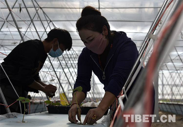 圖為那曲市的浙江援藏鄉(xiāng)村振興產(chǎn)業(yè)示范基地4500智能溫室里當(dāng)?shù)毓と苏N植蔬菜 攝影:王媛媛