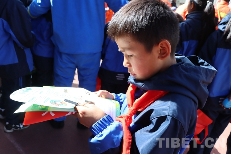 該小學(xué)相關(guān)負(fù)責(zé)人表示,通過(guò)森林火災(zāi)安全宣傳教育活動(dòng),進(jìn)一步提升了全校師生的森林防火意識(shí),提高了大家保護(hù)生態(tài)的安全意識(shí)。圖為小學(xué)生閱讀消防員發(fā)放的宣傳冊(cè) (中國(guó)西藏網(wǎng) 通訊員/張林)