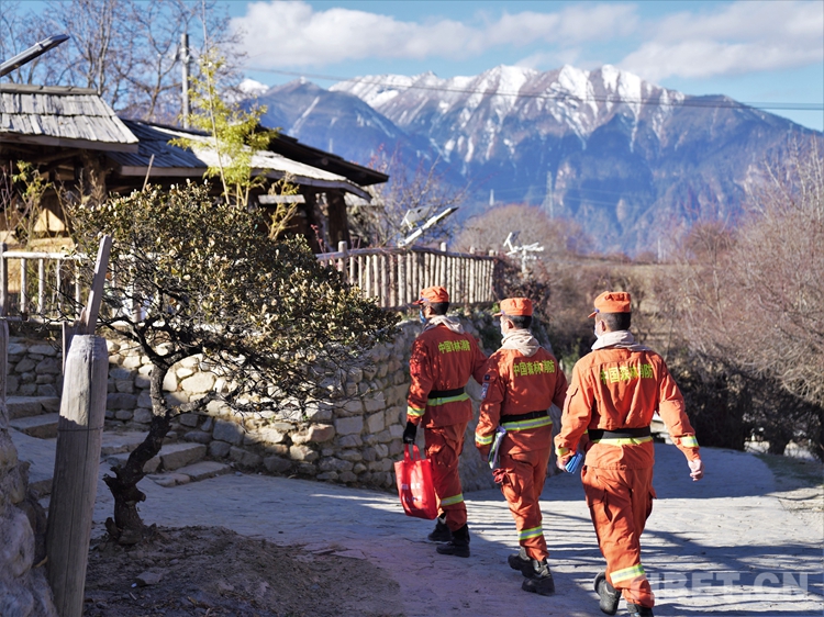 圖為巴宜區(qū)中隊(duì)指戰(zhàn)員入戶為駐地群眾普及防火知識(shí)