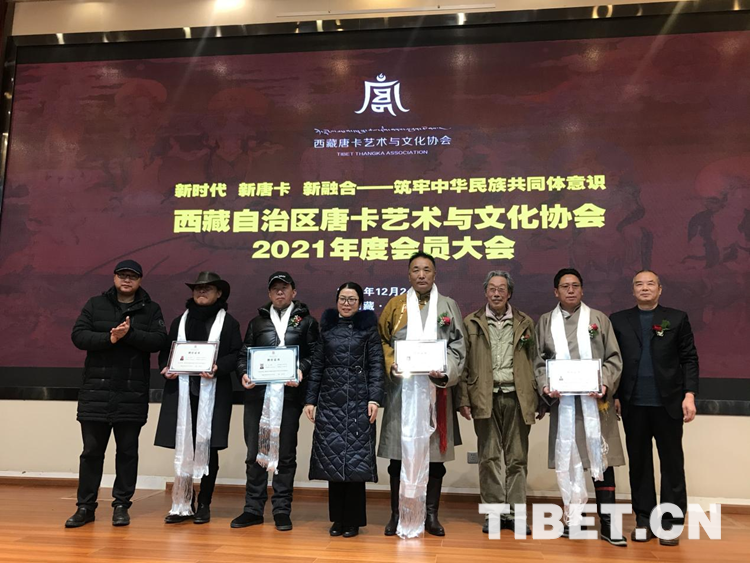 此外,會(huì)議聽取了西藏唐卡藝術(shù)協(xié)會(huì)年度工作報(bào)告,現(xiàn)場(chǎng)進(jìn)行關(guān)于西藏唐卡藝術(shù)與文化創(chuàng)作的訪談及展示該協(xié)會(huì)的新標(biāo)志,并向部分會(huì)員單位及個(gè)人頒發(fā)了聘書、證書。