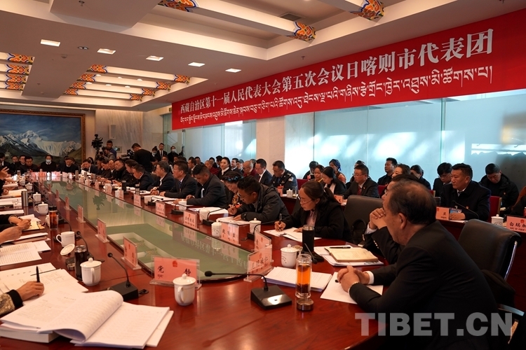 圖為日喀則市代表團(tuán)審議政府工作報(bào)告 攝影:王淑