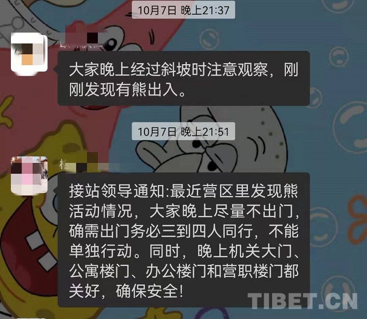 “站起來比人還高,脖子上還戴項鏈了”“剛剛一直盯著我,我拔腿就跑了,晚上大家還是注意”......這些是該站微信工作群“守邊人”里的真實對話。不僅是在三道拐執(zhí)勤點,該站機(jī)關(guān)所在的迪斯崗和口岸一線的友誼橋執(zhí)勤點,也有黑熊長期徘徊于此。因為黑熊大多是在夜間出沒,民警們在加完班后時常能碰見它們的身影,在單位微信群中,也能不時收到有關(guān)“熊出沒”的警示提醒。