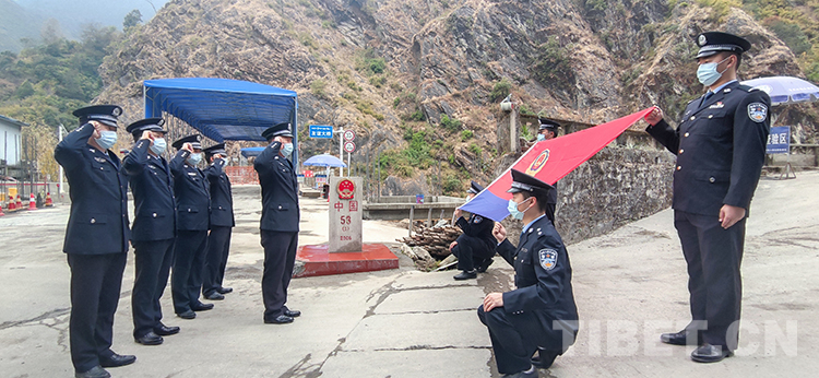 中國西藏網(wǎng)訊 在第二個“中國人民警察節(jié)”來臨之際,西藏聶拉木出入境邊防檢查站組織友誼橋執(zhí)勤點(diǎn)民警進(jìn)行巡邏踏查。執(zhí)勤點(diǎn)民警經(jīng)過陡崖,對波曲河兩翼、重要山口通道、河谷進(jìn)行巡邏。巡邏結(jié)束后,執(zhí)勤點(diǎn)民警開展了為界碑描紅、向警旗宣誓以及“我和我的警察節(jié)”交流座談會等活動。(中國西藏網(wǎng) 記者/王媛媛 圖片由聶拉木出入境邊防檢查站提供)