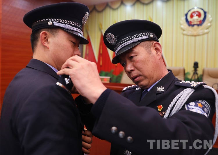中國(guó)西藏網(wǎng)訊 “接國(guó)家移民管理局2021年12月24日《關(guān)于授予和晉升計(jì)江飛等同志人民警察警司警銜的命令》,以下7名同志授予一級(jí)警員警銜……”1月10日,西藏自治區(qū)林芝邊境管理支隊(duì)在第二個(gè)中國(guó)人民警察節(jié)這個(gè)特殊的節(jié)日里,為92名民警晉升和授予人民警察警銜,進(jìn)一步增強(qiáng)了民警的責(zé)任感、使命感,激勵(lì)廣大民警投身于偉大的移民管理事業(yè)。