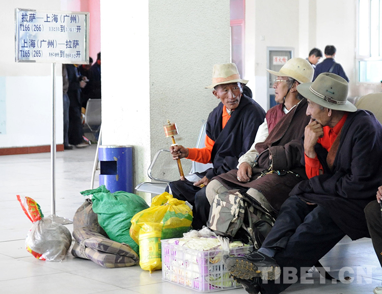 這是外出旅行的藏北牧民在那曲火車站候車廳等候乘車(唐召明2009年8月12日攝)