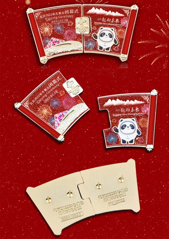 “來日方長” 北京2022年冬奧會閉幕式紀(jì)念徽章一套兩枚,拼合在一起就形成了一個漂亮的卷軸,寓意雖然北京冬奧會圓滿閉幕,但奧運精神薪火相傳,來日方長?;照虏馁|(zhì)為鋅合金,采用釉面彩繪、立體浮雕、立體分層等工藝,每個產(chǎn)品均雕刻獨立序列號,高5cm、寬9.3cm、厚3mm,紙盒包裝,限量2022套。