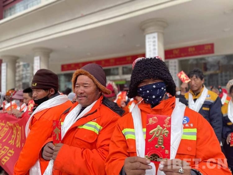 中國西藏網(wǎng)訊 2月28日,在藏歷新年到來之際,西藏自治區(qū)那曲市比如縣政府大樓前正在開展一場溫暖人心的慰問活動?!靶履旰?,給大家拜年了,衷心祝愿大家在新的一年里身體健康、工作順利。” 慰問現(xiàn)場,川英集團負(fù)責(zé)人向每位環(huán)衛(wèi)工人和城管協(xié)管員獻(xiàn)上潔白的哈達(dá)致以新年的美好祝福,感謝他們?yōu)楸热绛h(huán)衛(wèi)事業(yè)作出的貢獻(xiàn),并送上1000元慰問金。(中國西藏網(wǎng) 記者/賈華加 比如縣宣傳部供圖)
