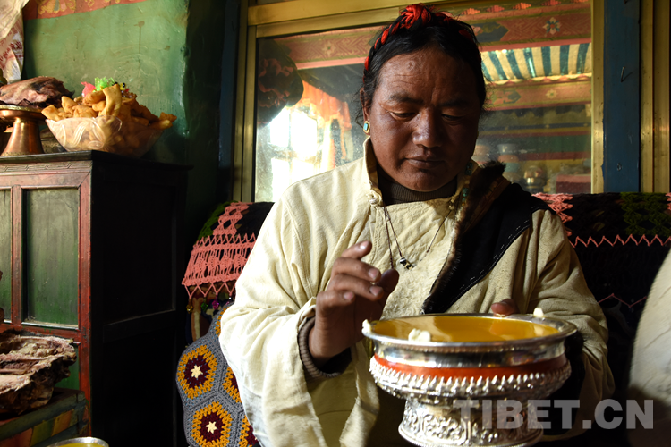 中國(guó)西藏網(wǎng)訊 3月3日,2022年藏歷水虎新年的大年初一,西藏自治區(qū)日喀則市薩迦縣雄麥鄉(xiāng)嘎白村,各族群眾在歡樂祥和的氛圍中歡度傳統(tǒng)佳節(jié)。一大早,嘎白村“夏林”一家人穿上節(jié)日的盛裝,向掛在客廳的領(lǐng)袖像敬獻(xiàn)哈達(dá)。隨后,晚輩向長(zhǎng)輩敬茶敬酒,幸福美滿的一家人圍坐在一起,一邊吃東西一邊聊家常,家里洋溢著和諧快樂、幸福美好的節(jié)日氣氛。(中國(guó)西藏網(wǎng) 記者/拉姆)