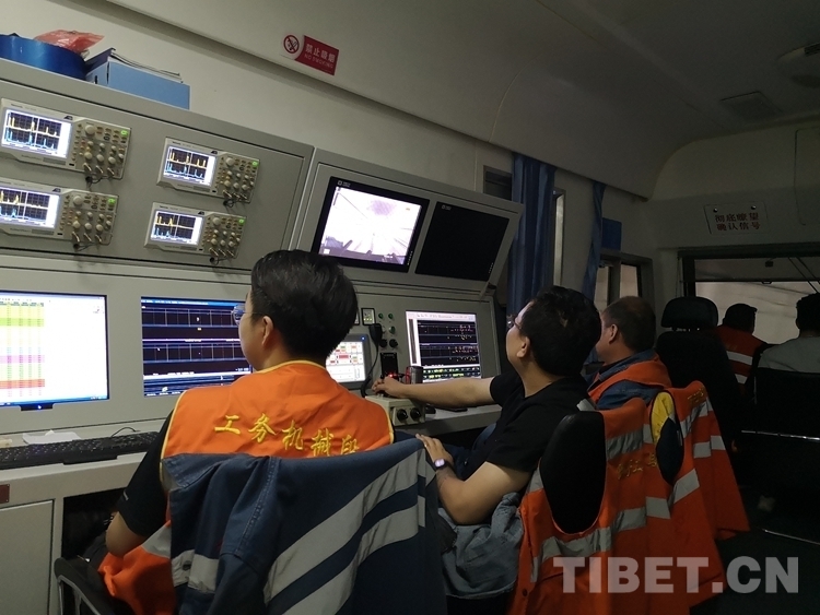 進(jìn)入拉林鐵路前,機(jī)組人員對鋼軌探傷車檢測裝置、走行及制動系統(tǒng)進(jìn)行了細(xì)致的檢查,對探傷系統(tǒng)及參數(shù)等進(jìn)行調(diào)試。探傷車前端,兩名司機(jī)緊盯前方,負(fù)責(zé)運(yùn)行;探傷操作臺前,副隊(duì)長張全福及4名探傷人員不斷調(diào)整相關(guān)參數(shù),連續(xù)6個(gè)小時(shí)對檢測過的鋼軌數(shù)據(jù)進(jìn)行認(rèn)真盯控,通過數(shù)據(jù)變化判斷鋼軌是否存在傷損。