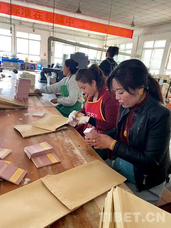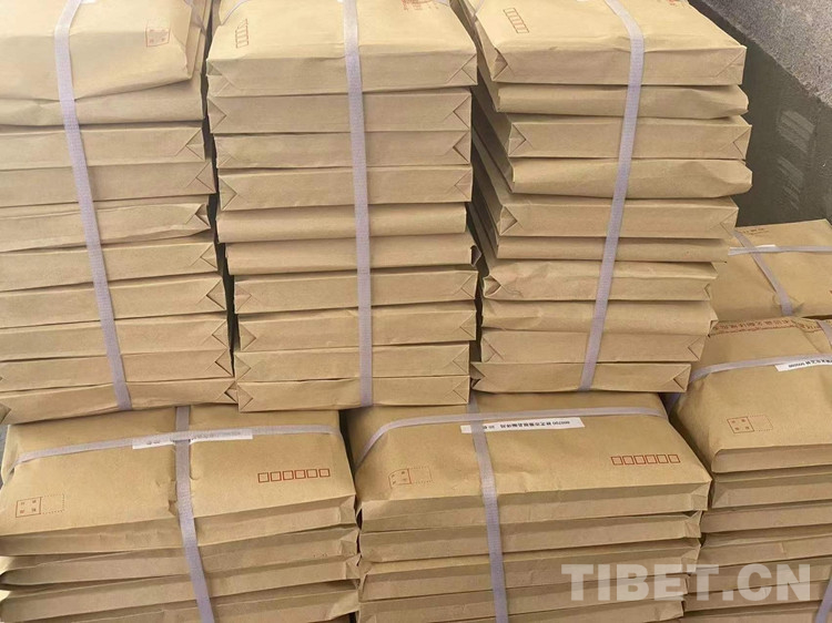 圖為工作人員正在打包發(fā)往基層的《漢藏對(duì)照術(shù)語規(guī)范明鏡》(2021)