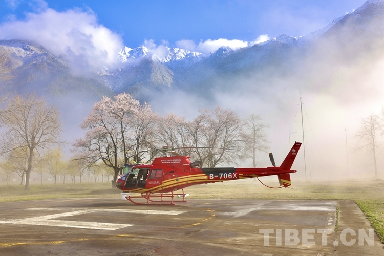 中國西藏網(wǎng)訊 云遮霧繞的早晨,青山如黛,桃花正盛。國網(wǎng)通航公司SG1151直升機(jī)機(jī)組的王磊卻沒時(shí)間欣賞這如畫的美景,一早便和同事們準(zhǔn)備今天的航巡作業(yè)。