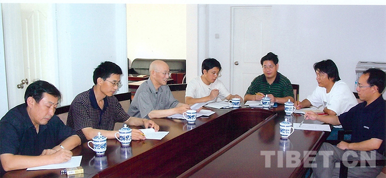 圖為陳慶英先生(左3)主持中國藏學研究中心歷史研究所會議,討論《西藏通史》相關工作 (圖片由張云提供)