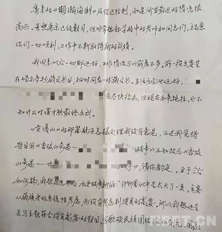 記得我大學畢業(yè)剛到新單位,人生地不熟,加之原來沉浸在“文學夢”中,現(xiàn)在陡然轉(zhuǎn)到藏族歷史研究,所謂基礎(chǔ)不牢地動山搖,困惑加不適,可想而知。陳老師在聊天中得知我的情況后,談到文史不分家,自己對文學也很有興趣,與青海《瀚海潮》編輯很熟悉。這樣,我遇到一個學識淵博的良師益友,聆聽指教,何其難得。在陳老師的鼓勵和幫助下,我在惶惑中嘗試把歷史與文學結(jié)合起來,與他合作發(fā)表了歷史故事新編《長安和親》《香波山奇遇—吐蕃聶墀贊普的故事》等,平穩(wěn)地完成了專業(yè)變動的過渡期。后來,他離開中央民族學院到青海社會科學院工作,我們之間仍堅持信件往來,得到他很多幫助。每一次通信,我們談得最多的都是學術(shù)。在某次回信中,他談及下一步合作的工作,特別提到“至于今后如何搞,我想原來定的歷史故事新編計劃似乎是太大了一點。主要從藏族史的系統(tǒng)性考慮,而沒有考慮到現(xiàn)實的需要。所以我想還是先寫主題符合現(xiàn)實需要的題目,寫歌頌民族團結(jié)、文化交流,國家統(tǒng)一的主題。最近,我搞了一篇《八思巴年譜》,覺得其中有些題目很可以寫。原來說的金城公主的故事也是一個很好的題目。另外,明代的大慈法王、大乘法王也有很好的題目。總之,我現(xiàn)在認為可以不考慮藏族史的系統(tǒng)性,先找資料,有合適的就寫一篇。合作的辦法我想找到資料后,可擬一個提綱,商量決定后,由一人執(zhí)筆。我看你可先搞金城公主的提綱,我搞八思巴的提綱,搞出來后再考慮怎樣寫,不知你以為如何。”