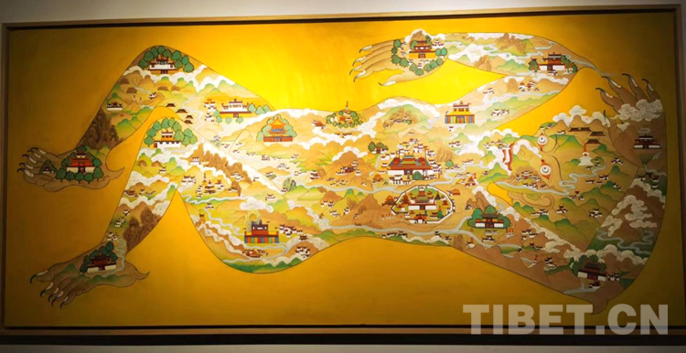 圖為鎮(zhèn)魔圖。作品以西藏“鎮(zhèn)魔圖”傳說為繪畫基礎進行了探索性創(chuàng)作,色彩厚重絢麗 攝影:王淑