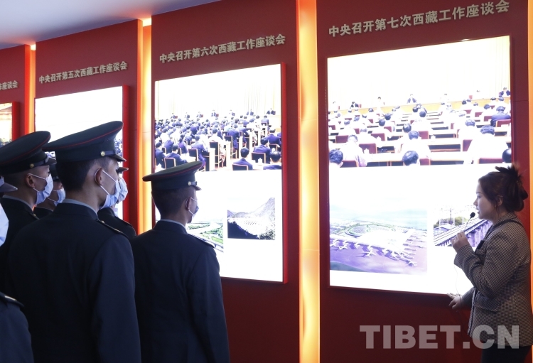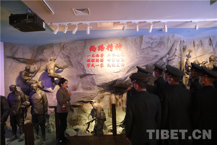 “1959年3月28日,中央政府宣布解散西藏地方政府,徹底砸碎了桎梏西藏上千年的封建農(nóng)奴制,西藏翻開了新的歷史篇章?!痹谥v解員的引導下,該團80名青年官兵走進西藏百萬農(nóng)奴解放紀念館,沿著革命先輩的足跡,聆聽著崢嶸歲月里一段段感人至深的紅色故事,2700平方米的展廳中陳列了800多件歷史文獻檔案資糧、文物實物、圖片和展陳藝術作品,詳細介紹了中國共產(chǎn)黨帶領西藏各族人民進行偉大的民主改革,使百萬農(nóng)奴翻身得解放的廢奴歷史。