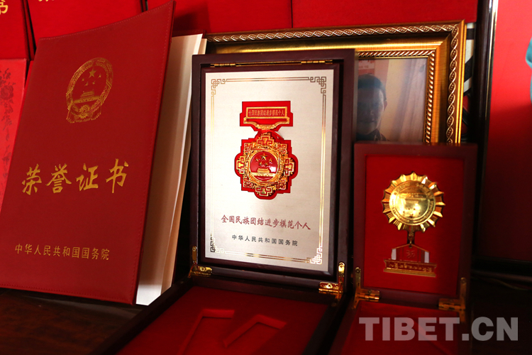 圖為楊桂房家中擺放的全國(guó)民族團(tuán)結(jié)進(jìn)步模范個(gè)人榮譽(yù)證書(shū)和獎(jiǎng)?wù)?攝影:王佳豪