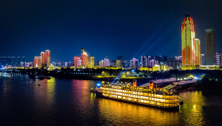 圖為知音號游船在武漢長江段瑰麗的夜景中暢行 圖片來源:知音號網(wǎng)站