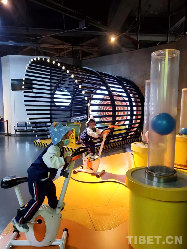 活動中,孩子們在西藏自然科學(xué)博物館深入認(rèn)識了西藏的生靈草木、萬水千山,近距離觀看曾經(jīng)在西藏生活過的遠(yuǎn)古大型生物昌都龍、喜馬拉雅魚龍等動物化石,領(lǐng)略雪豹、藏羚羊、桫欏等高原生命之美。孩子們在科技館的科學(xué)互動展項區(qū)也玩得不亦樂乎,他們不僅親身感受了動滑輪、動畫的形成等科學(xué)奧秘,還沉浸在了高仿真機(jī)器人、VR虛擬現(xiàn)實、4D影片帶來的全新高科技體驗中。為了活動形式更加豐富,西藏自然科學(xué)博物館還特意安排大家參觀了“黨領(lǐng)導(dǎo)下的科學(xué)家”主題展覽。