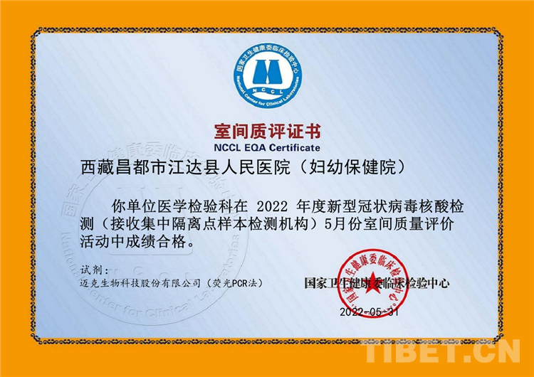 中國西藏網(wǎng)訊 近日,國家衛(wèi)生健康委臨床檢驗(yàn)中心公布了2022年4月和5月新型冠狀病毒核酸檢測(接收集中隔離點(diǎn)樣本檢測機(jī)構(gòu))的室間質(zhì)評結(jié)果,西藏自治區(qū)昌都市江達(dá)縣人民醫(yī)院核酸檢測實(shí)驗(yàn)室順利通過“國家衛(wèi)健委臨床檢驗(yàn)中心”新冠病毒核酸檢測室間質(zhì)評,標(biāo)志著江達(dá)縣人民醫(yī)院新型冠狀病毒核酸檢測能力獲得國家權(quán)威機(jī)構(gòu)的認(rèn)可。