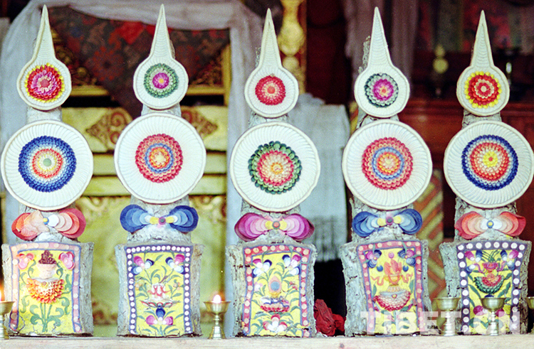 這是藏北草原一寺廟所供奉的、用酥油所雕塑的酥油花(唐召明1998年攝)