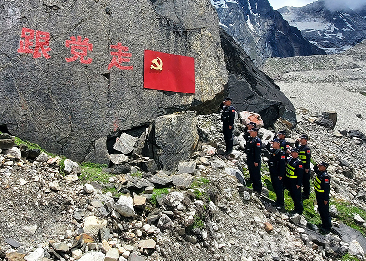 “我志愿加入中國共產(chǎn)黨,擁護(hù)黨的綱領(lǐng),遵守黨的章程......”。邊巴邊境派出所民警在深入一線巡邏踏查間隙,面向黨旗肅然站立,高舉右拳莊嚴(yán)宣誓,表達(dá)為黨的事業(yè)奮斗終身的初心,更加堅定聽黨話、跟黨走的理想信念。