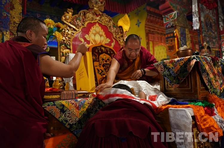 圖為僧人向班禪敬獻(xiàn)曼扎 攝影:王淑
