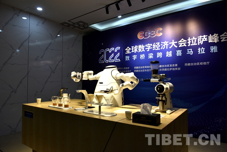 圖為2022全球數(shù)字經(jīng)濟(jì)大會拉薩峰會設(shè)置的智能機(jī)器人——智咖大師展示 攝影:王媛媛