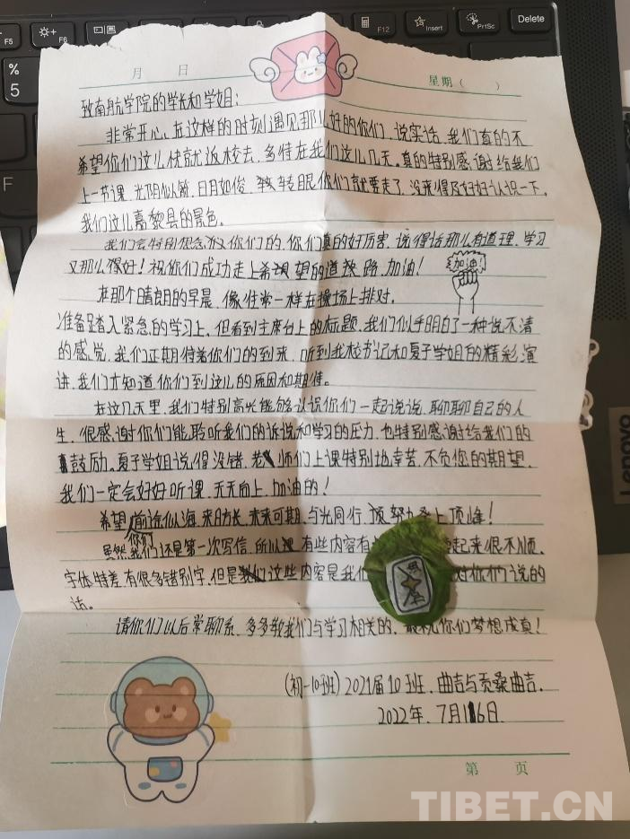 此次嘉黎之行,讓我真切地感受到了西藏同胞的純樸、熱情、善良。孩子們課堂上的認(rèn)真思考、仔細(xì)演算、積極回答都給我們留下了深刻的印象。我們一起過(guò)林卡,一起吃飯,到家里做客……無(wú)數(shù)的言行舉止之間都流露出他們的講禮貌、重禮儀。我們也結(jié)識(shí)了為這片熱土奉獻(xiàn)多年青春的公安政委、校長(zhǎng)、書(shū)記等等,正是他們的無(wú)私付出,讓雪域高原欣欣向榮,富強(qiáng)美麗。未來(lái),我們也將與嘉黎縣中學(xué)建立長(zhǎng)期的合作,號(hào)召更多南航學(xué)子為當(dāng)?shù)貛ハM猓?/p>