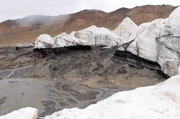 過(guò)河后我們停車(chē),徒步在向?qū)У膸ьI(lǐng)下走向冰川。這就是被確認(rèn)為除南極、北極以外的世界第三大冰川?。?/p>