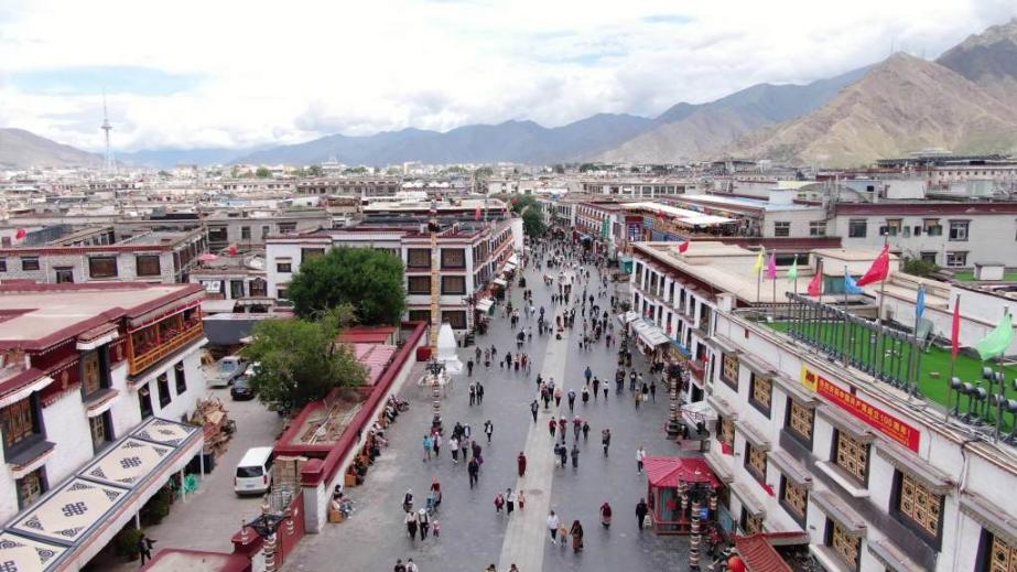 圖為俯瞰拉薩八廓街 圖片來源:中央廣播電視總臺央視新聞官方賬號 攝影:李旭