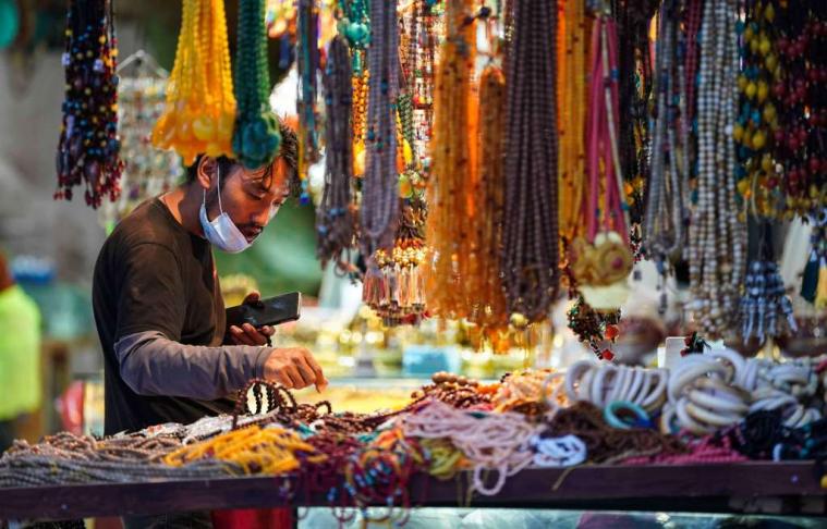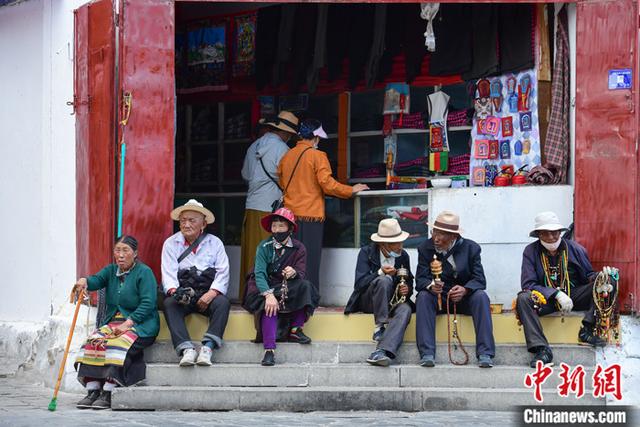 圖為在八廓街上休息的人們 圖片來源:中國新聞網(wǎng) 攝影:貢嘎來松