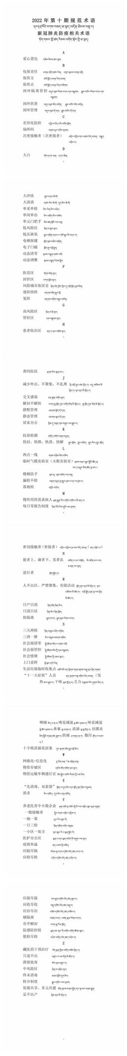 據(jù)了解,為使專業(yè)術(shù)語譯文更加精準規(guī)范,通俗易懂,做到統(tǒng)一標準,西藏自治區(qū)藏語委辦(編譯局)本著表意準確、概念清晰、通俗易懂的原則,最終審定通過新冠肺炎防疫方面的術(shù)語和短語91條。