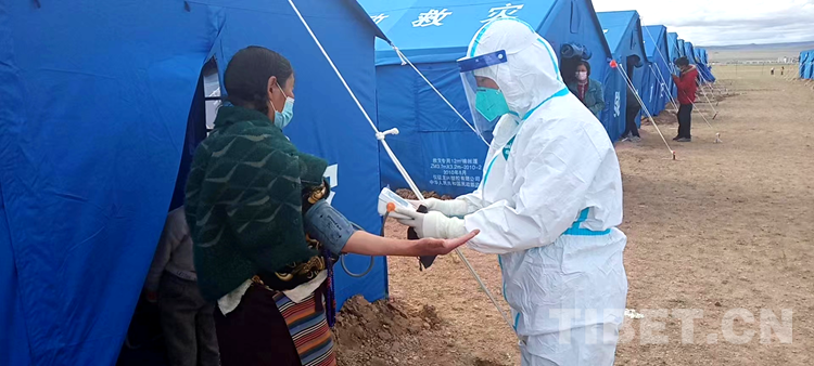 圖為醫(yī)護人員在測血壓 攝影:平措多杰