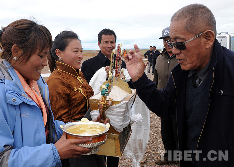 這是那曲地區(qū)雙湖特別區(qū)(現(xiàn)那曲市雙湖縣)女青年使用大銀碗向來賓敬青稞酒(唐召明2013年7月25日攝)