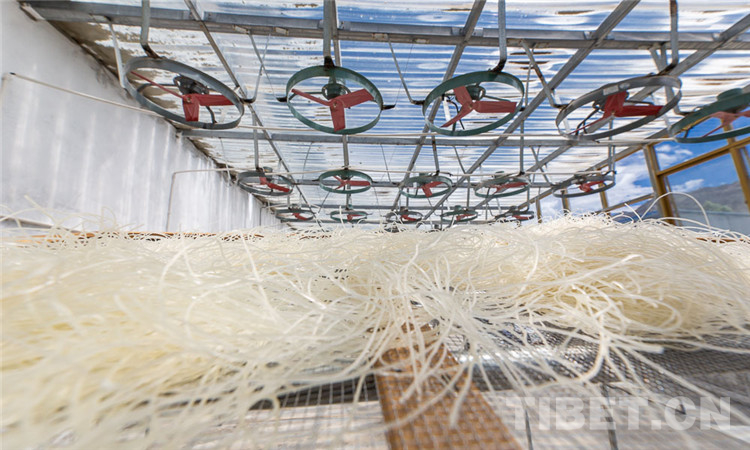 圖為山南市一合作社內用于烘干粉條的電風扇