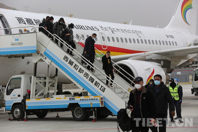 圖為飛機(jī)安全抵達(dá)拉薩貢嘎機(jī)場后乘客有序走下飛機(jī) 攝影:王佳豪