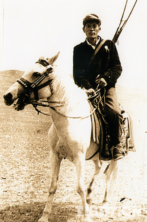 這是時(shí)任申扎縣縣長(zhǎng)的洛桑丹珍騎馬,準(zhǔn)備走進(jìn)藏北無(wú)人區(qū)考察(唐召明提供,1974年攝)