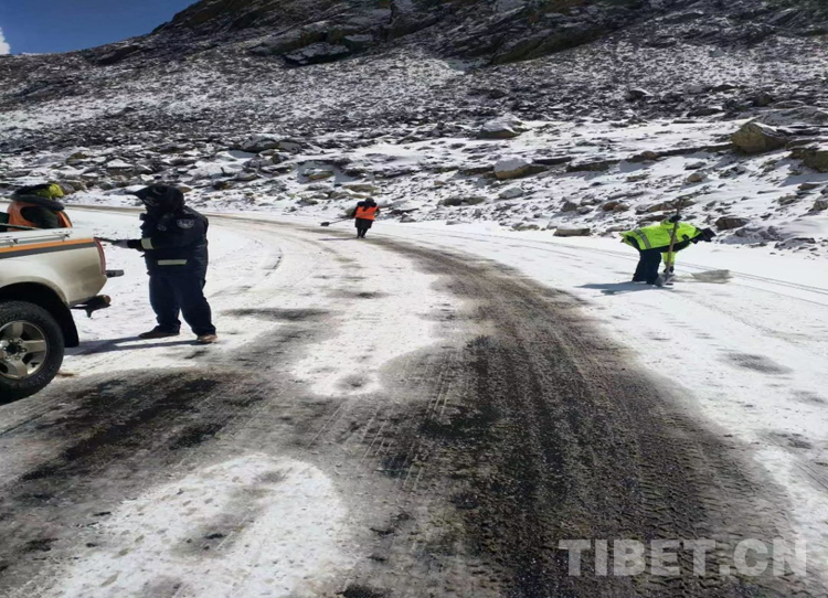 圖為西藏自治區(qū)山南市公安干警雪后在道路上鏟雪,便利群眾出行 攝影:拉加當周