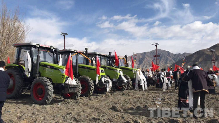 圖為西藏農(nóng)民開耕儀式上的機械化工具 攝影:拉加當周