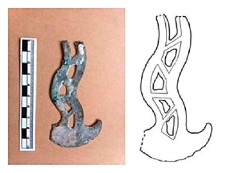 結(jié)合已有考古研究成果,余小洪分析稱,“高原絲綢之路”上的銅鉞形器,刃部受到云南不對稱形銅鉞的影響,不規(guī)則形鏤孔裝飾則受到青海省治多縣普卡貢瑪石棺墓牌飾的影響,是一種融合型新器物。