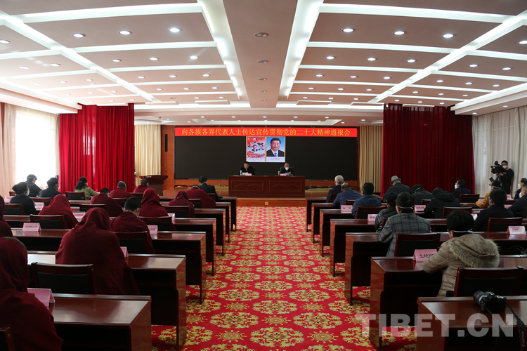 中國西藏網(wǎng)訊 11月18日,西藏自治區(qū)向各族各界代表人士傳達宣傳貫徹黨的二十大精神通報會在拉薩市召開,來自民族界、宗教界、黨外知識分子和新的社會階層人士、非公經(jīng)濟界以及歸國藏胞約50位代表參加。
