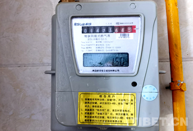 圖為拉薩居民群眾家中的燃?xì)獗砩巷@示用氣價格為1.50元/立方米 攝影:王佳豪