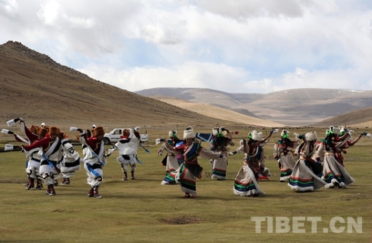在西藏,乃至藏北唱歌跳舞,已遠(yuǎn)遠(yuǎn)超出了表演的概念,成了廣泛性的群眾自我娛樂休閑活動。他們不但節(jié)日唱歌、勞動唱歌,而且生活里也離不開唱歌。可以毫不夸張地說,在這里,一個人的生命旅程,都有歌聲來陪伴,他們從出生唱到死去,從少年唱到老年。學(xué)說話時學(xué)唱歌,學(xué)走路時學(xué)跳舞。