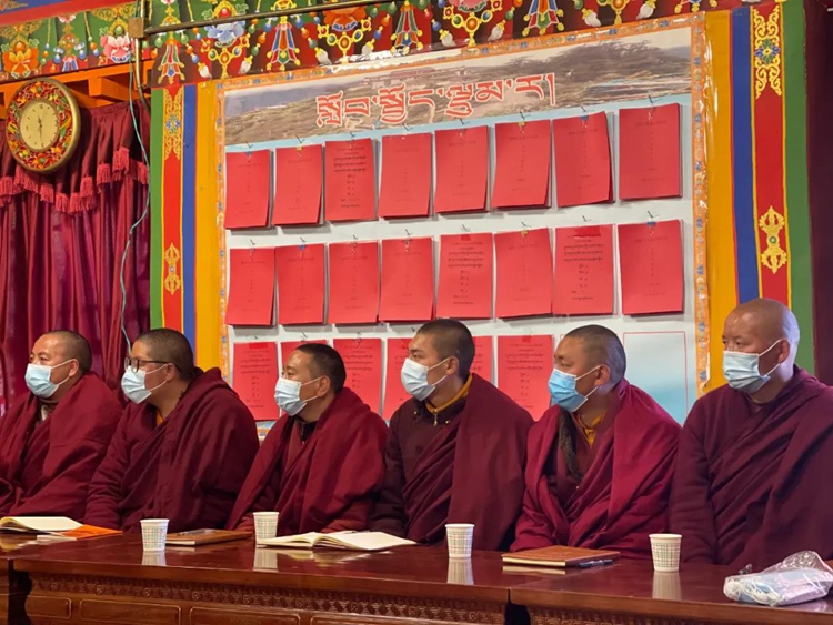 圖為卡久寺僧人認(rèn)真聆聽宣講 圖片來(lái)源:洛扎縣政府官網(wǎng)